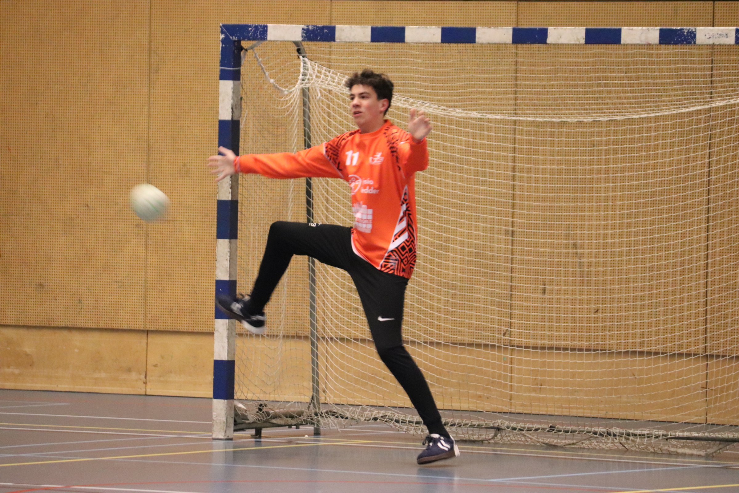 Keeper Mason de Vries van het WHC Team HC1 tijdens de wedstrijd tegen Twist.