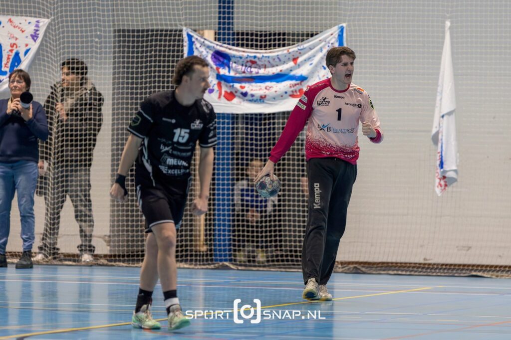 Nu bleef de schade beperkt, omdat ook Mauro van der Wiel (beheerst vanuit de rechterhoek) en Sten Maas (perfecte overtal) bij 22-25 de zege veilig stelde met minder dan twee minuten op de klok. De treffers van Martijn Poot en Sil Klompé waren vervolgens slechts van waarde voor de 24-26 eindstand.